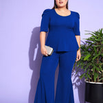 Women Royal Blue Peplum Top With Kick Pleats Pants