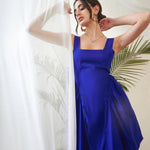 Women Royal Blue Poplin Smocked Back Skater Dress