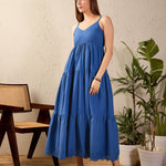 Women Royal Blue Schiffli Strappy Tered Maxi Dress