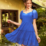 Women Royal Blue Sweetheart Neck Short Skater Dress