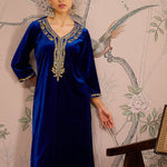 Women Royal Blue Velvet Front Embroidered Straight Kurta