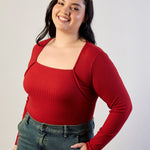 Rust Empire Neck Rib Top, in Rib fabric, Unlined, Regular Length, Comfort Fit, No Closure, Straight Hemline and features Empire Neck Detail
