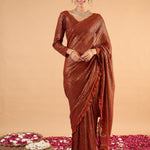 Women Rust Sequins RTW Draped Saree With Unstitched Blouse