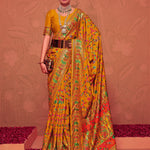 Mustard Kalamkari Printed Zari Border Silk Saree
