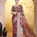Wine Ethnic Motifs Zari Border Organza Saree