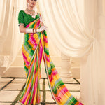 Green Leheriya Printed Embroidered Border Georgette Saree