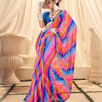 Blue Leheriya Printed Embroidered Border Georgette Saree