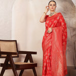 Red Ethnic Motifs Banarsi Woven Zari Silk Saree