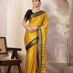 Mustard Solid Traditional Banarsi Zari Border Silk Saree