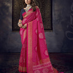Magenta Bhandej Aari Work Crushed Silk Saree