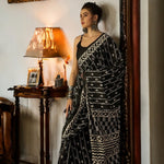 Black Traditional Dabu Print Bhagalpuri Silk Saree