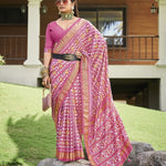 Mauve Ikat Motifs Printed Foil Border Silk Saree
