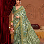 Mehndi Ikat Motifs Printed Foil Border Silk Saree