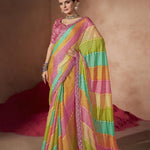 Pink Leheriya Foil Coding Border Chiffon Saree