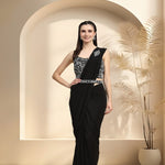 Black Party Wear Ruffled & Belted Ready To Wear Lycra Saree