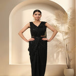Black Sequinned & Belted Ready To Wear Lycra Saree
