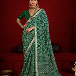Rama Green Patola Printed Silk Blend Saree With Unstitched Blouse Piece