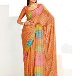 Orange Bandhani Printed Shimmer Net Saree With Unstitched Blouse Piece
