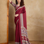 Maroon Ajrakh Printed Silk Blend Saree With Unstitched Blouse Piece