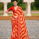 Orange Leheriya Printed Silk Blend Saree With Unstitched Blouse