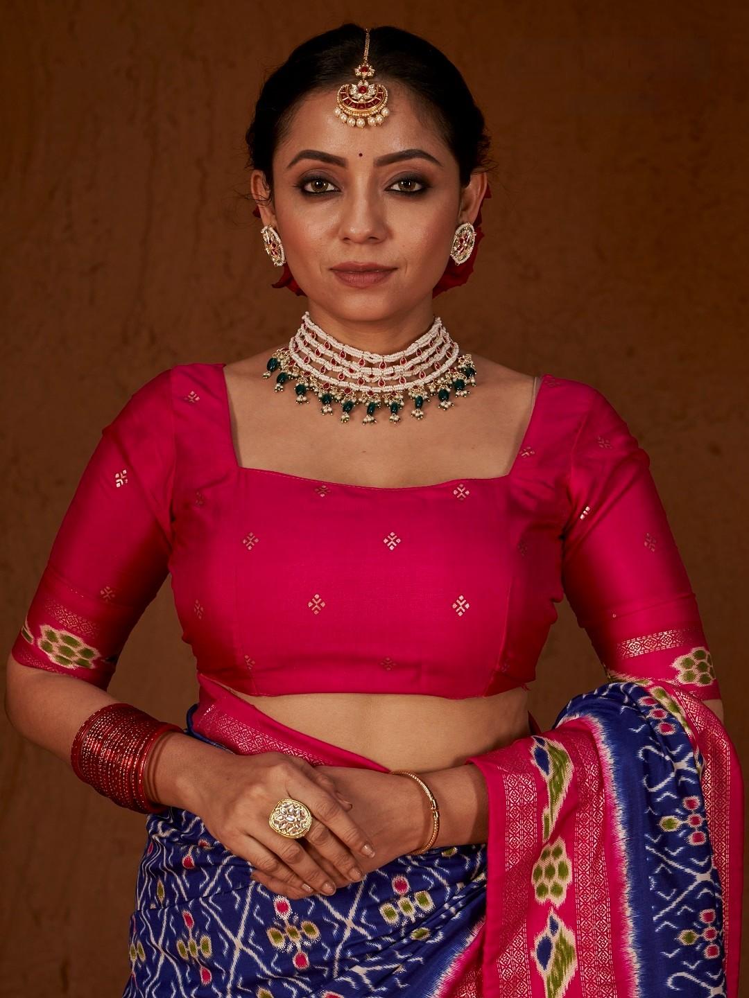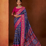 Ikat Printed Zari Border Silk Saree (Pre-Order)