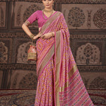 Geometric Printed Zari Border Silk Saree (Pre-Order)