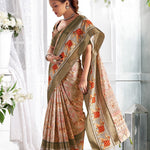 Beige Floral Printed Giza Silk Bantac Digital Border Saree (Pre-Order)