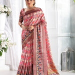 Peach Floral Printed Giza Silk Bantac Digital Border Saree (Pre-Order)