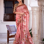 Peach Digital Print Zari Border Linen Saree (Pre-Order)