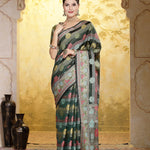 Bottle Green Ethnic Motifs Zari Border Organza Saree (Pre-Order)