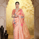 Peach Paisley Woven Zari Border Silk Saree (Pre-Order)