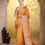 Mustard Geometric Print Woven Zari Border Organza Saree (Pre-Order)
