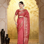 Pink Geometric Print Woven Zari Border Organza Saree (Pre-Order)