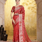 Maroon Geometric Print Woven Zari Border Organza Saree (Pre-Order)