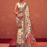 Cream Kalamkari Printed Zari Border Silk Saree (Pre-Order)