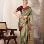 Mehndi Solid Traditional Banarsi Zari Border Silk Saree (Pre-Order)