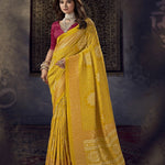 Mustard Bhandej Aari Work Crushed Silk Saree (Pre-Order)