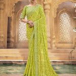 Green Bhandej Printed Georgette Saree (Pre-Order)