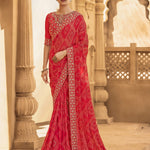 Red Bhandej Printed Georgette Saree (Pre-Order)