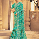 Turquoise Bhandej Printed Georgette Saree (Pre-Order)