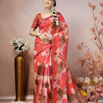 Magenta Floral Foil Printed Cotton Blend Saree (Pre-Order)