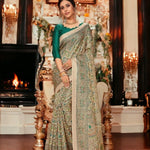 Beige Traditional Floral Silk Saree (Pre-Order)