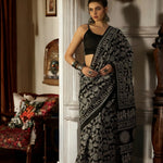 Black Traditional Folklore Printed Bhagalpuri Silk Saree (Pre-Order)