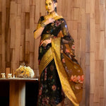 Black Ethnic Floral Zari Organza Saree (Pre-Order)