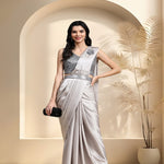 Grey Party Wear Belted Ready To Wear Satin Saree (Pre-Order)