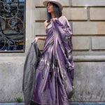 Purple Printed Satin Saree with Unstitched Blouse Piece (Pre-Order)