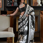 White Printed Satin Saree with Unstitched Blouse Piece (Pre-Order)