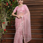 Pink Gota Patti Work Shimmer Net Saree (Pre-Order)