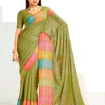 Rama Green Bandhani Printed Shimmer Net Saree With Unstitched Blouse Piece (Pre-Order)