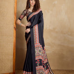 Black Ajrakh Printed Silk Blend Saree With Unstitched Blouse Piece (Pre-Order)